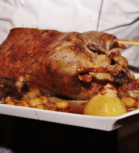 Sie können Ihre Gans mit allen Beilagen auch abholen und zuhause genießen. Eine Gans reicht je nach Größe für 4-6 Personen.