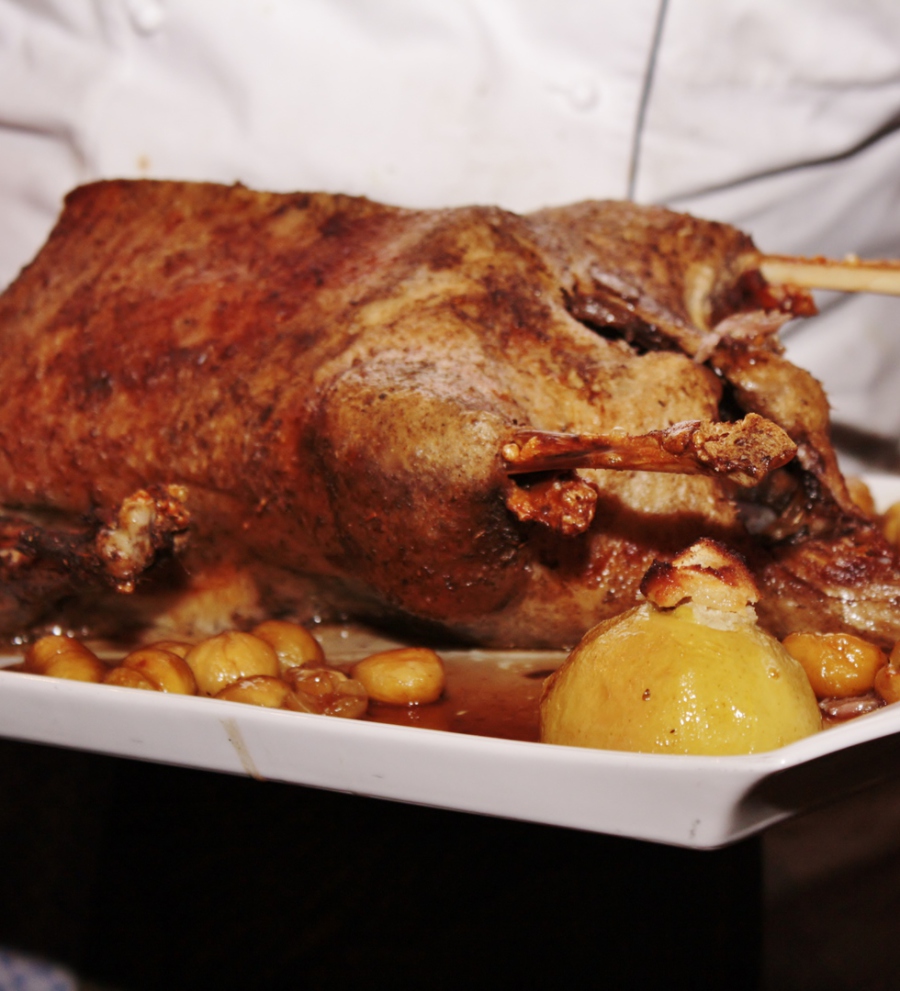 Die frischen, freilaufenden Gänse in Bio-Qualität aus Dithmarschen bieten wir Ihnen als 3-gängiges Menü für 65 Euro pro Person an.